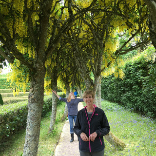 I had never seen a Golden Chain Tree before. Golden Chain Trees have long panicles of yellow flowers cascading all over the tree. These beauties were growing over a garden path and the petals were falling on the path like snow. Golden Chain Trees will grow in Zone 8, but flower better in cooler temps. It figures.....